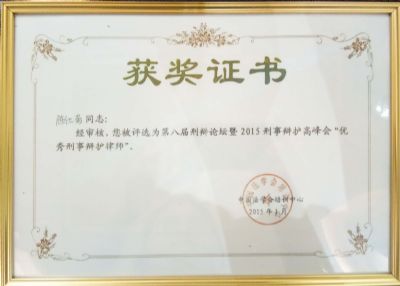 陈仕菊 2015优秀刑事辩护律师