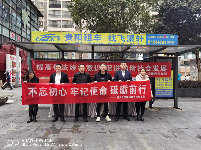 2024年3月15日下午,贵州众芳律师事务所和律所党支部组织党员律师、群众律师开展以“提高依法维权意识、促进和谐社会发展”“不忘初心、牢记使命、砥砺前行”为主题的法治宣传进社区活动,该活动在贵阳市南明区花果园财富广场举行。律所执行主任朱飞、党支部书记、高级合伙人罗毅、高级合伙人、贵州众芳(观山湖)律师事务所主任田坤坤、高级合伙人田仁洪及律师鲁茜、陈龙、张定龙、张博磊、...