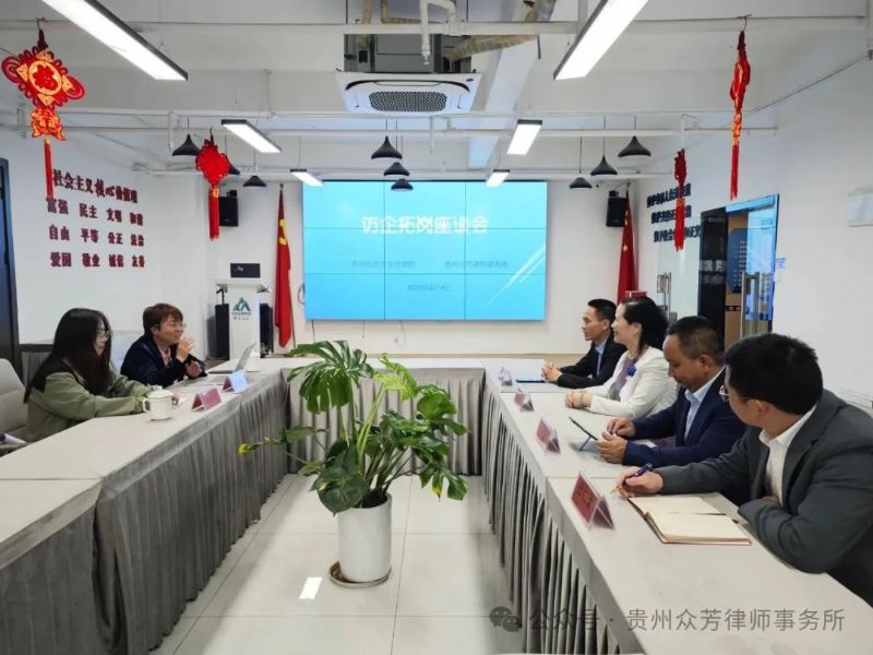 为深化校企合作,共育高素质法律人才,6月4日,贵州民族大学法学院程南老师携应届毕业生杨勤超一行到访贵州众芳律师事务所。律所主任陈仕菊,副主任罗毅、田仁洪、朱飞等热情接待并参与座谈交流。